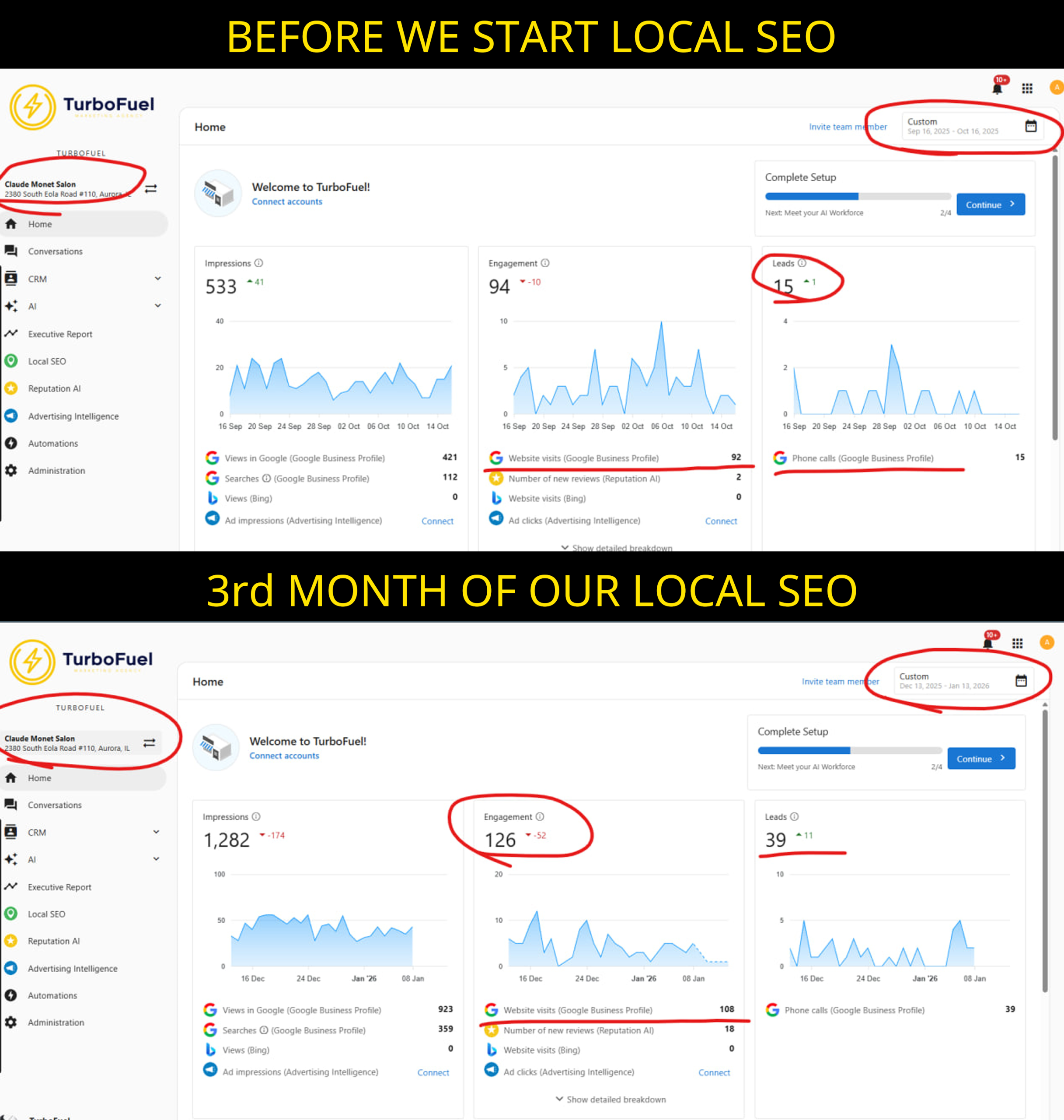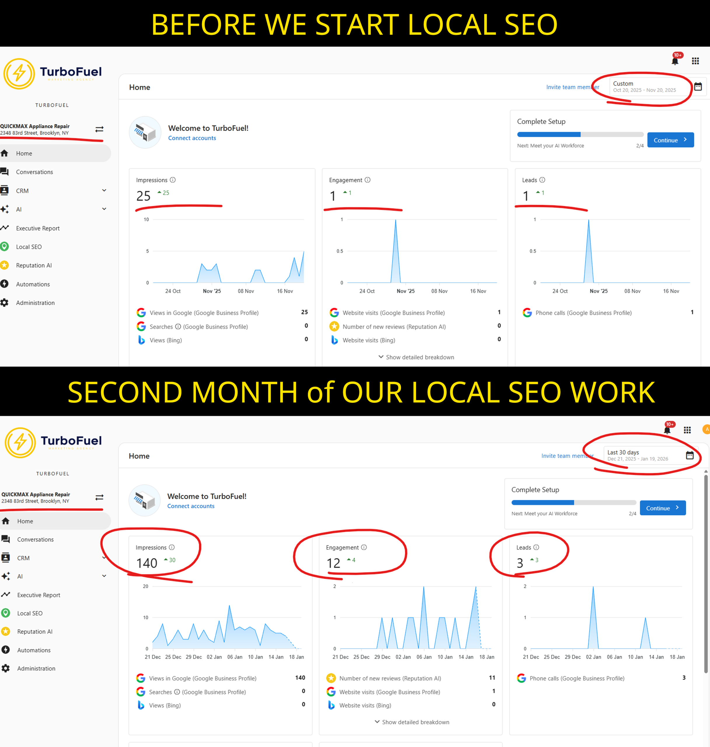 TurboFuel helps your business appear in the top 3 local results on Google Maps—where over 60% of local traffic happens. With our powerful Local SEO strategies, we ensure you’re seen by ready-to-buy customers in your area. From optimized Google Business Profiles to consistent citations and on-page geo-targeted enhancements, TurboFuel drives real local traffic, calls, and visits to your business. Don’t stay invisible—let TurboFuel put your brand in front of the customers who matter most.